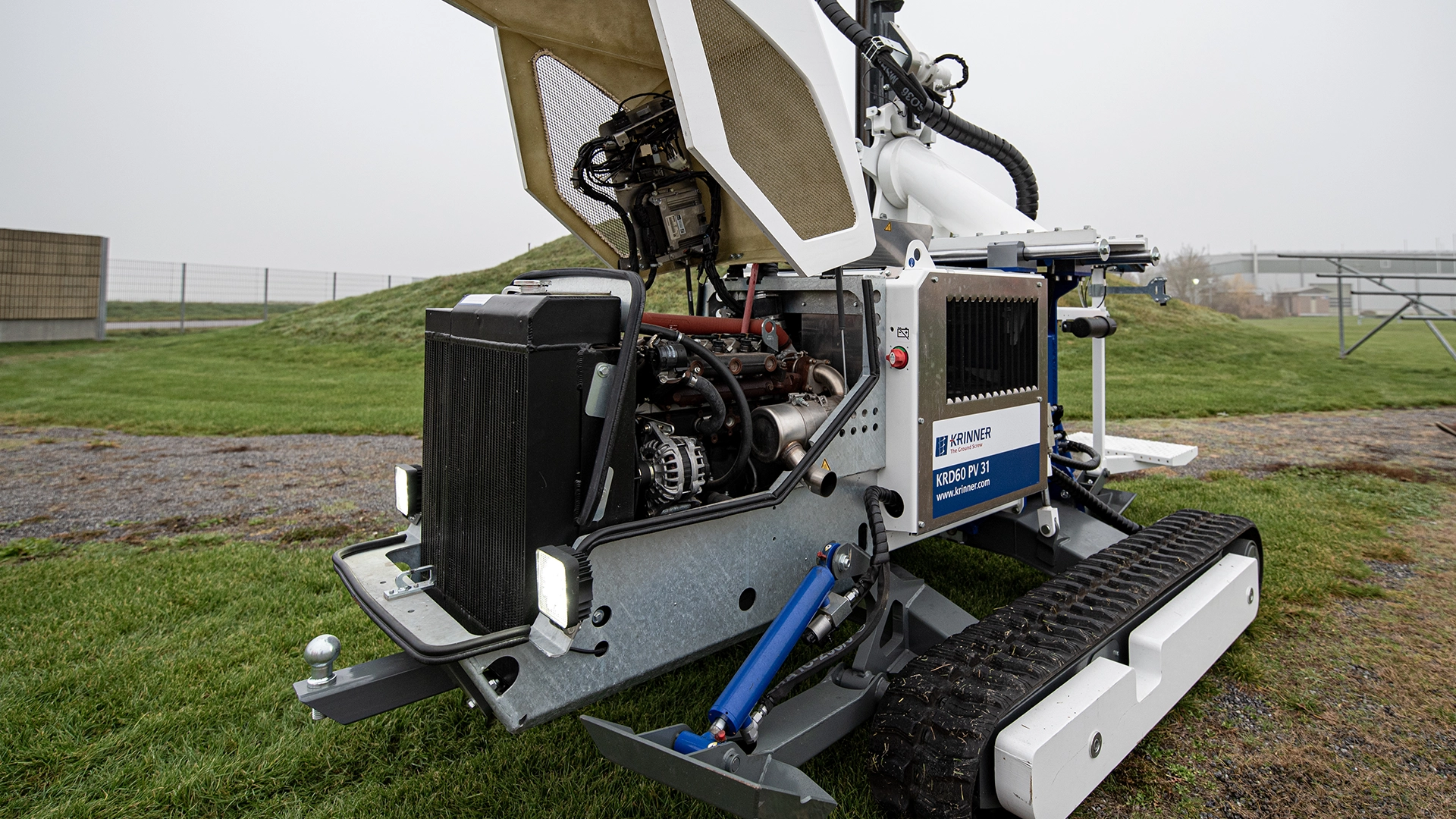 Krinner’s latest KRD 60 PV ground screwdriver, which achieves a maximum torque of 5,500 Nm when installed in a compact space, meets all these requirements. The primary drive for the traction and working hydraulics is, in this case, a Hatz 4H50TIC OPU 55 kW diesel engine with 2-litre displacement that forms a compact unit.